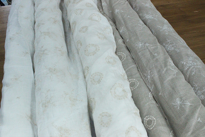 リネン生地から、綿プリント生地まで幅広い布を取り扱っております。